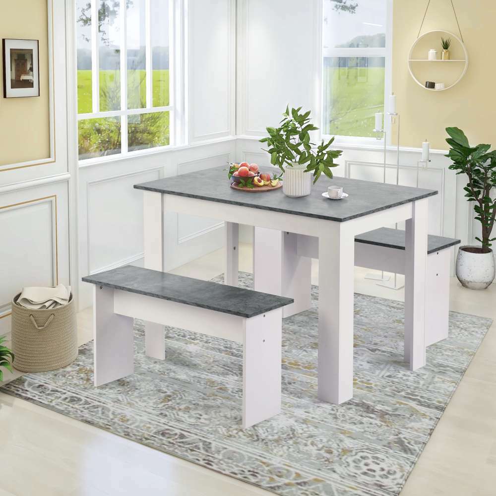 3pcs Dining Table Set Kitchen Table With 2 Benches for Kitchen Dining Room