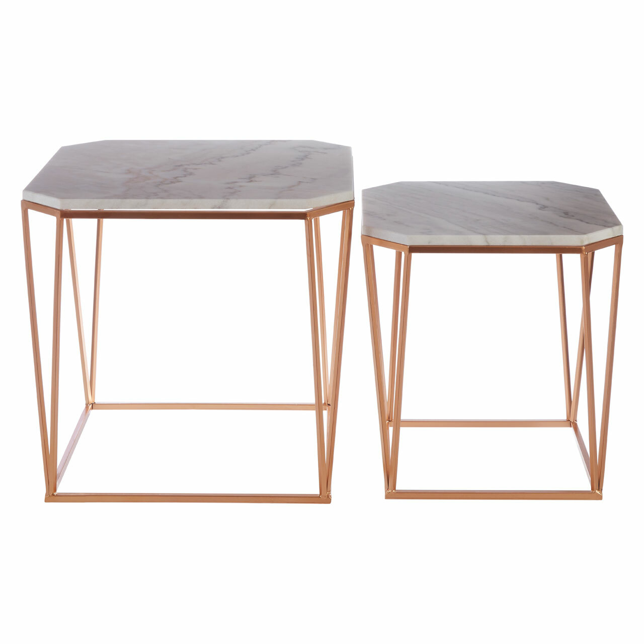 Arcana Tables White Marble / Rose Gold Metal Set of 2 Living Room Home Furniture