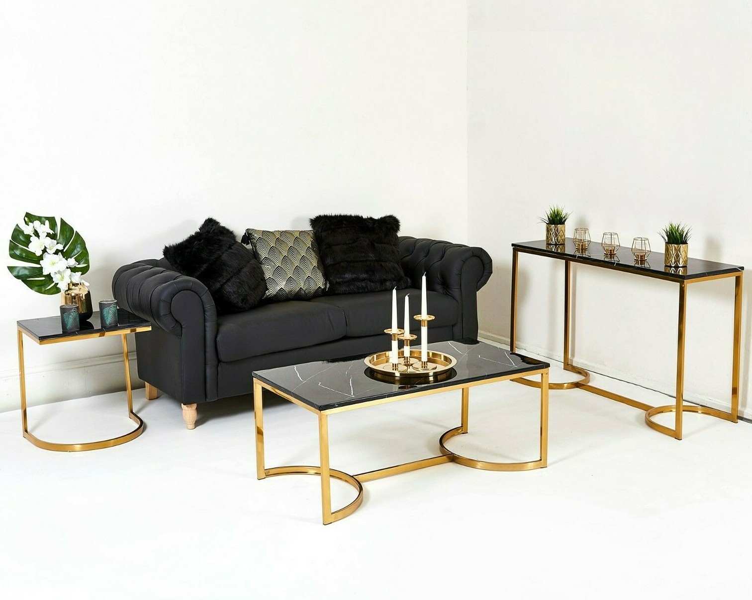 Black Marble Effect Dining Table Gold Steel Brass Legs Side Console Coffee table