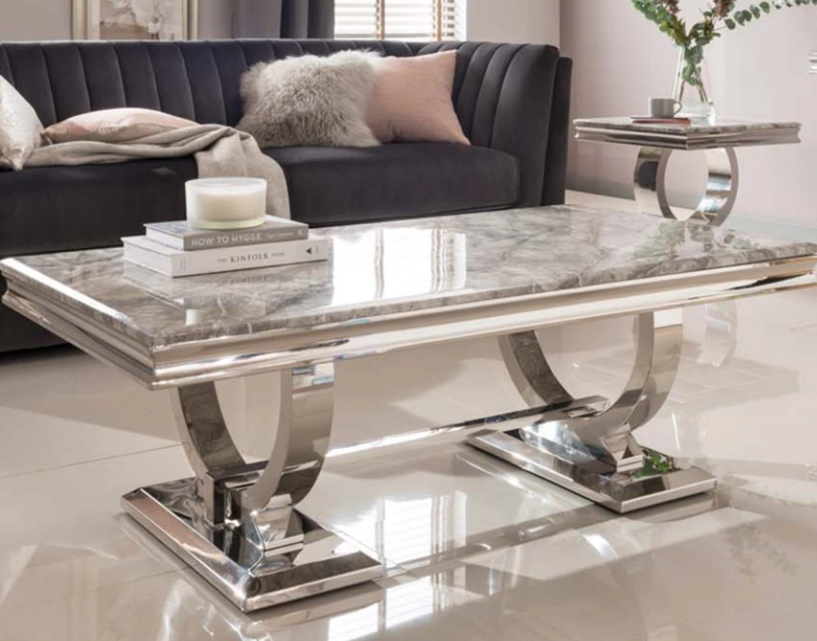 BRAND NEW LARGE GREY MARBLE TOP CHROME LEG COFFEE TABLE 130CM