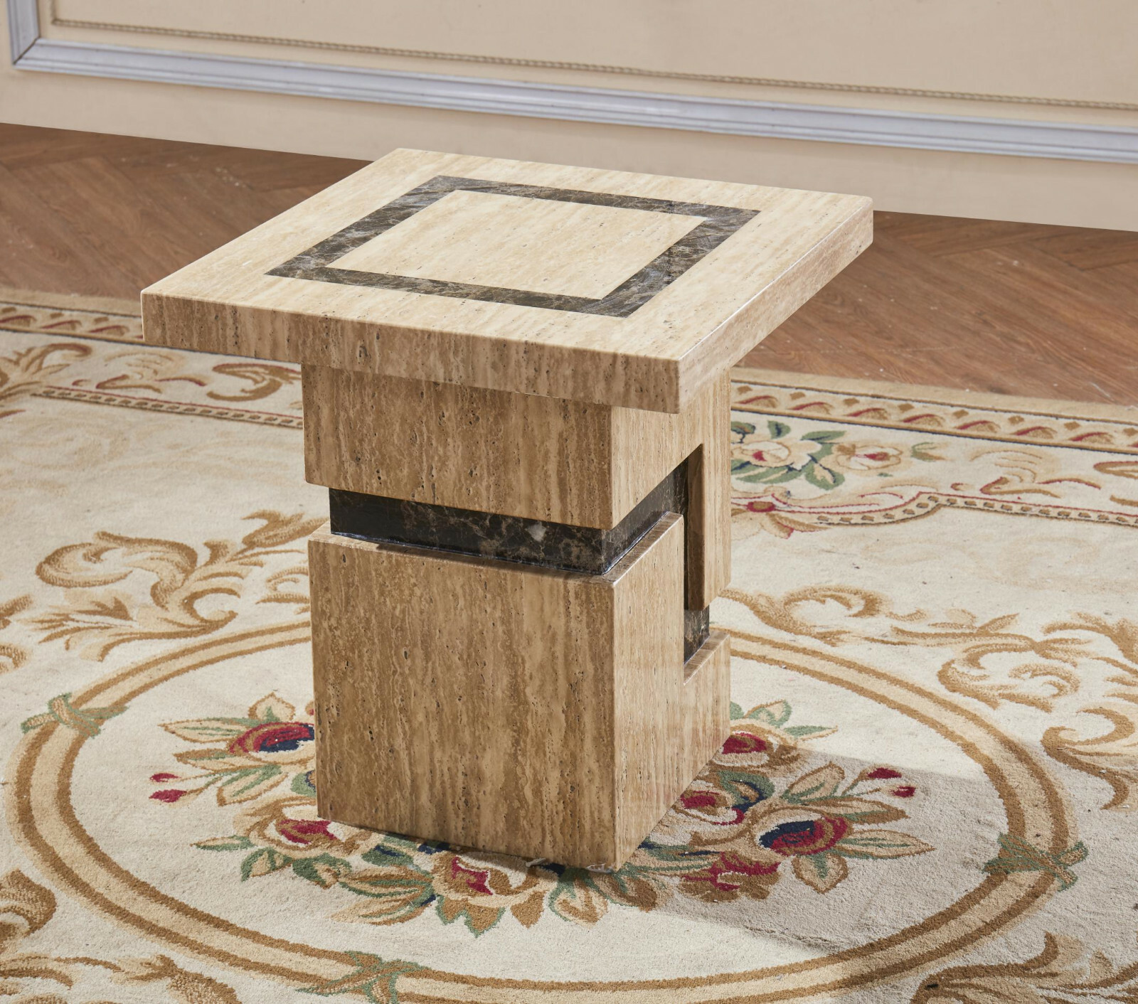 Lamp Table Side End Table Natural Stone with Marble Effect Lacquer Sand Finish
