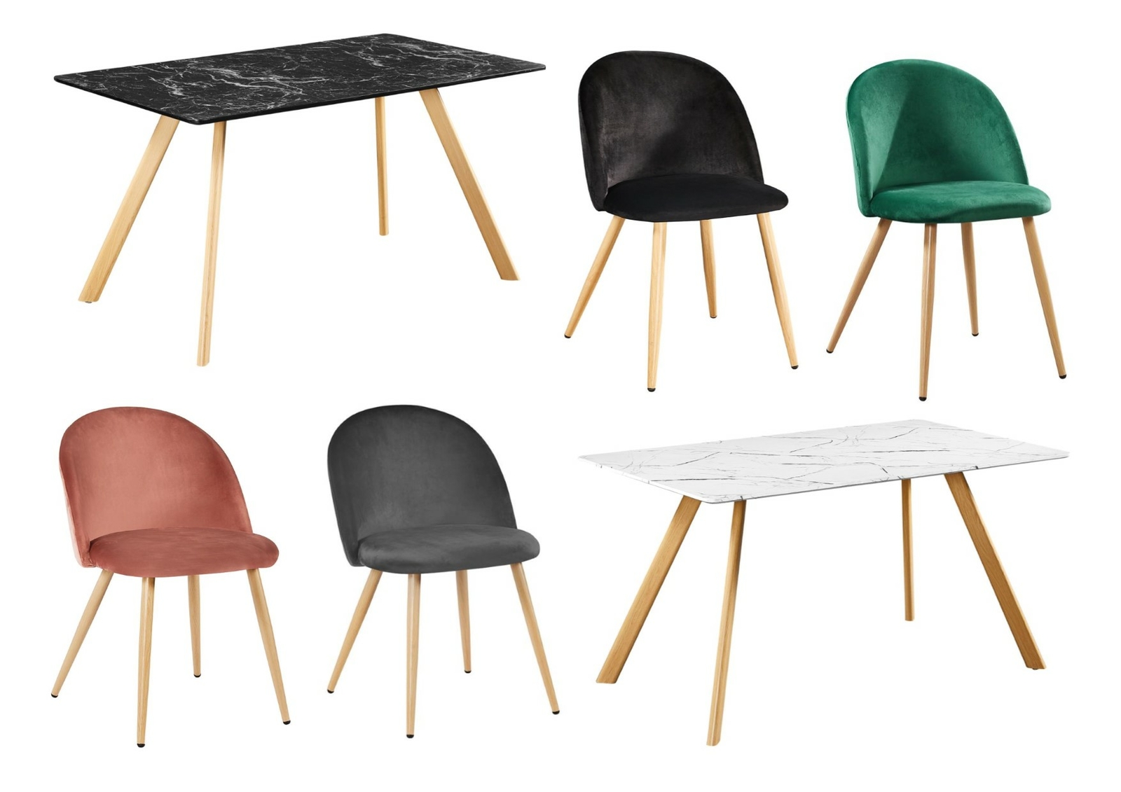 LPD Venice Retro Velvet Fabric Dining Chairs & Marble Effect Dining Tables