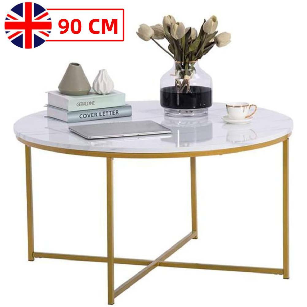 Round Marble Look Coffee Table Side End Table Metal Legs Living Room Furniture