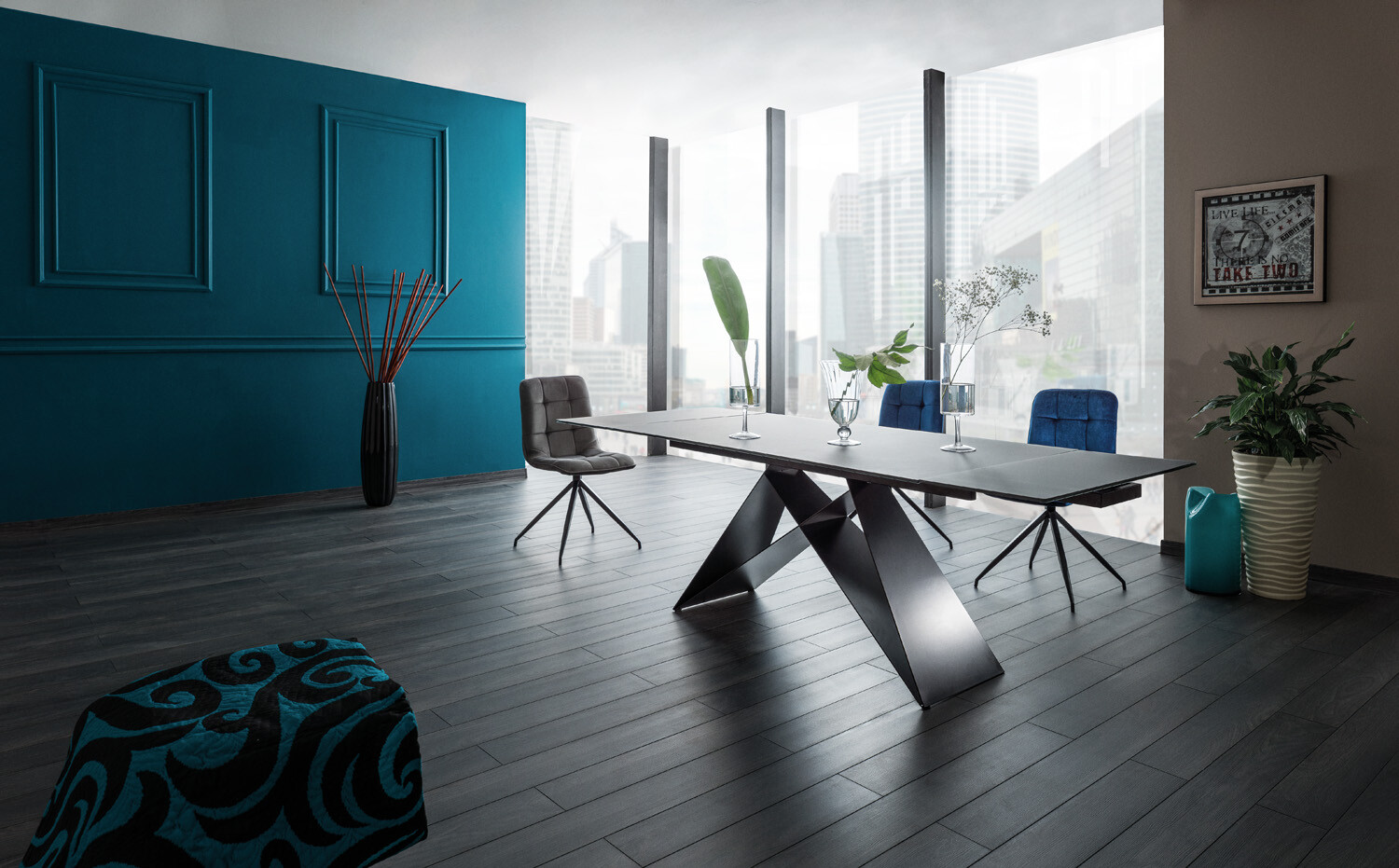 “WESTIN” Black or Grey or Marble Top & Black Metal Legs Extendable Dining Table